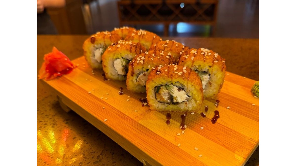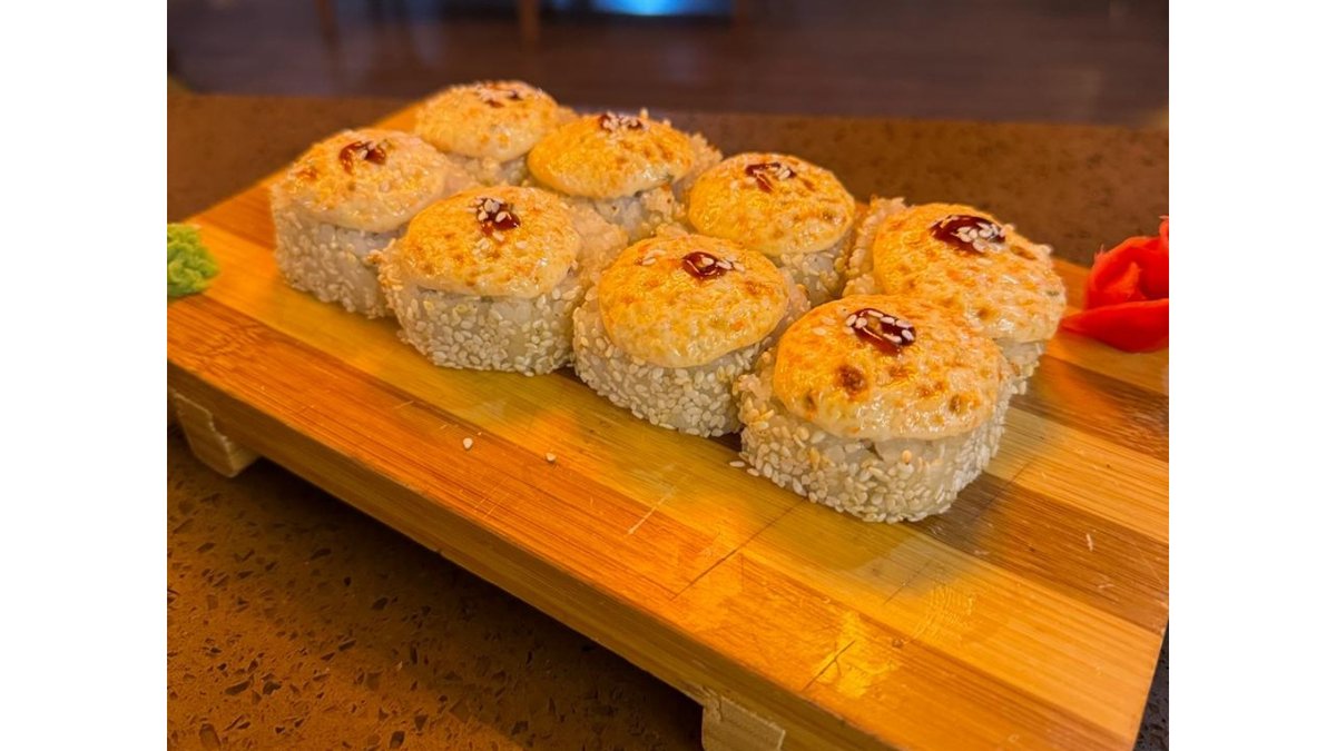 Рис, нори, угорь, творожный сыр, соус спайси, кунжут