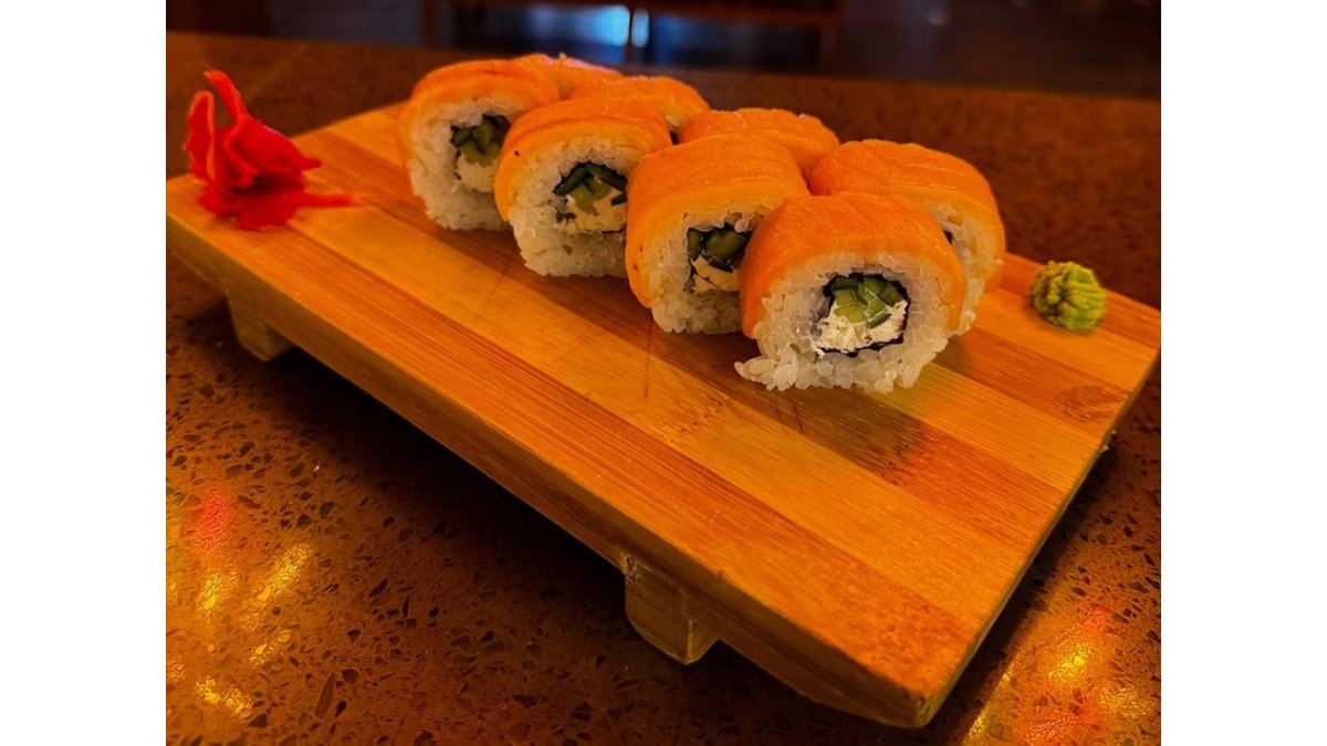 Рис, нори, творожный сыр, огурцы, семга