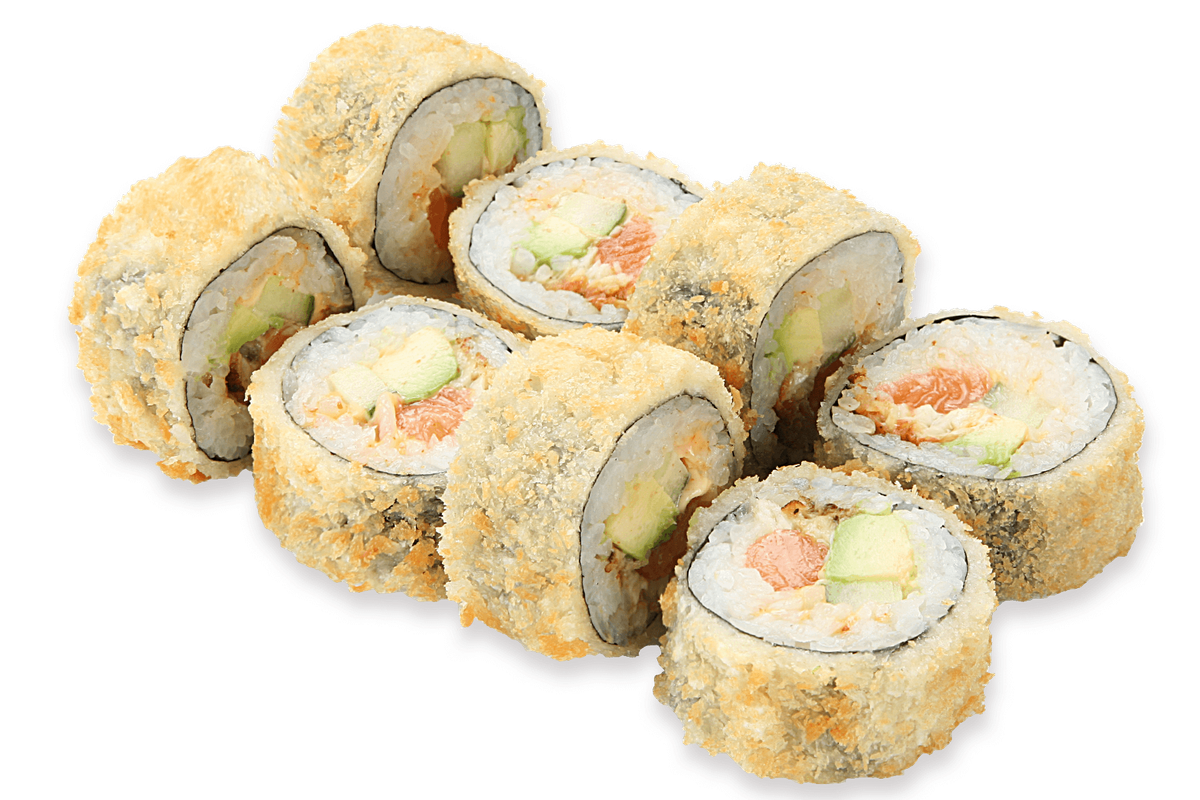 Сытный ролл обжаренный в кляре,с лососем, нежным сливочным сыром и огурцами
