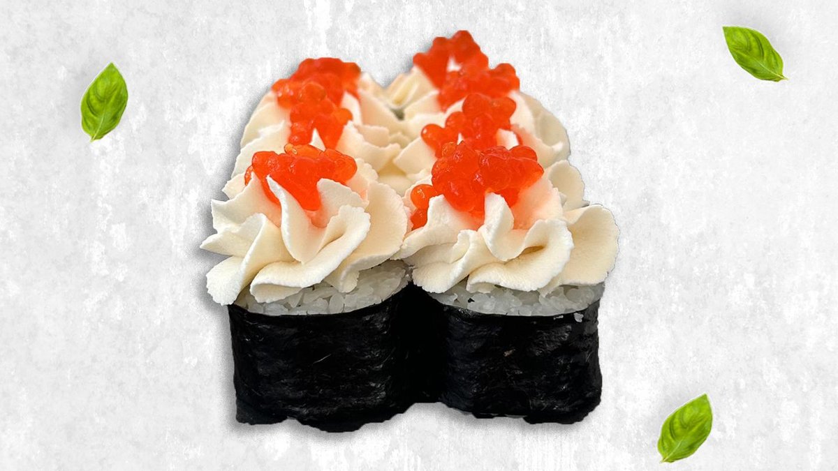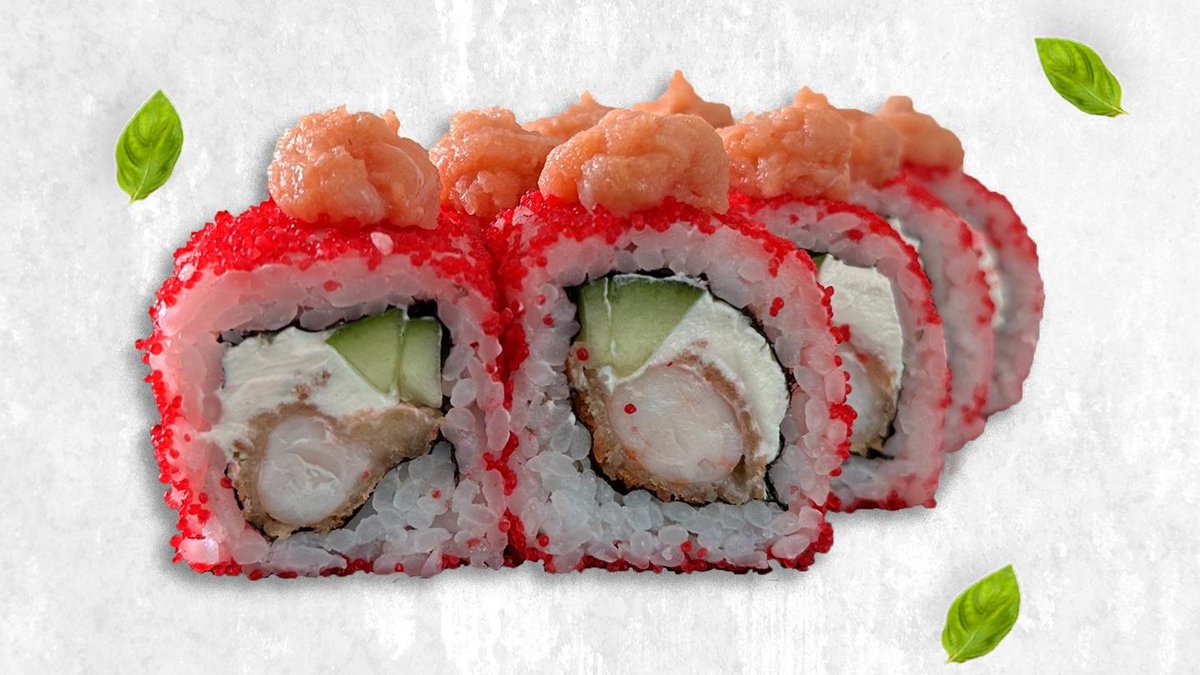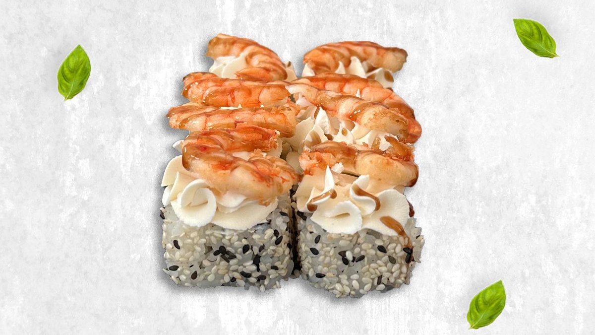 Творожный сыр, огурец, спайси соус, креветки темпура, майонез, унаги