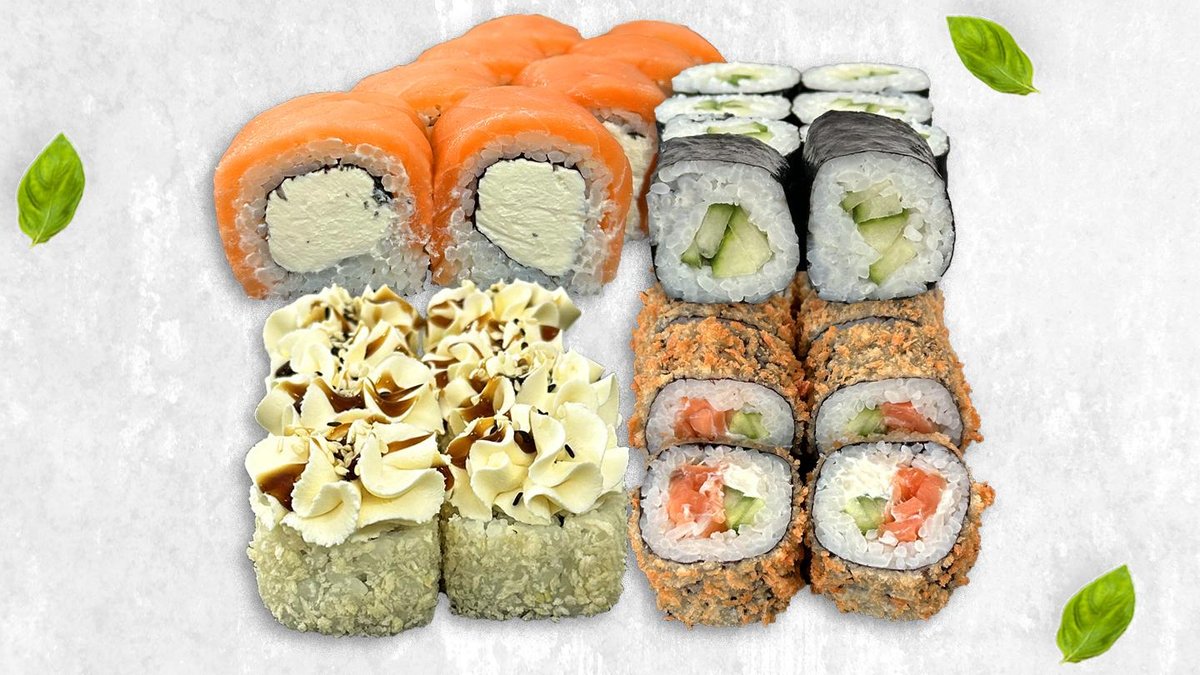 Филадельфия 100 - 8шт Жареный ролл 400 - 8шт Бешеный лосось 210 - 8шт Классический ролл 610 - 8шт
