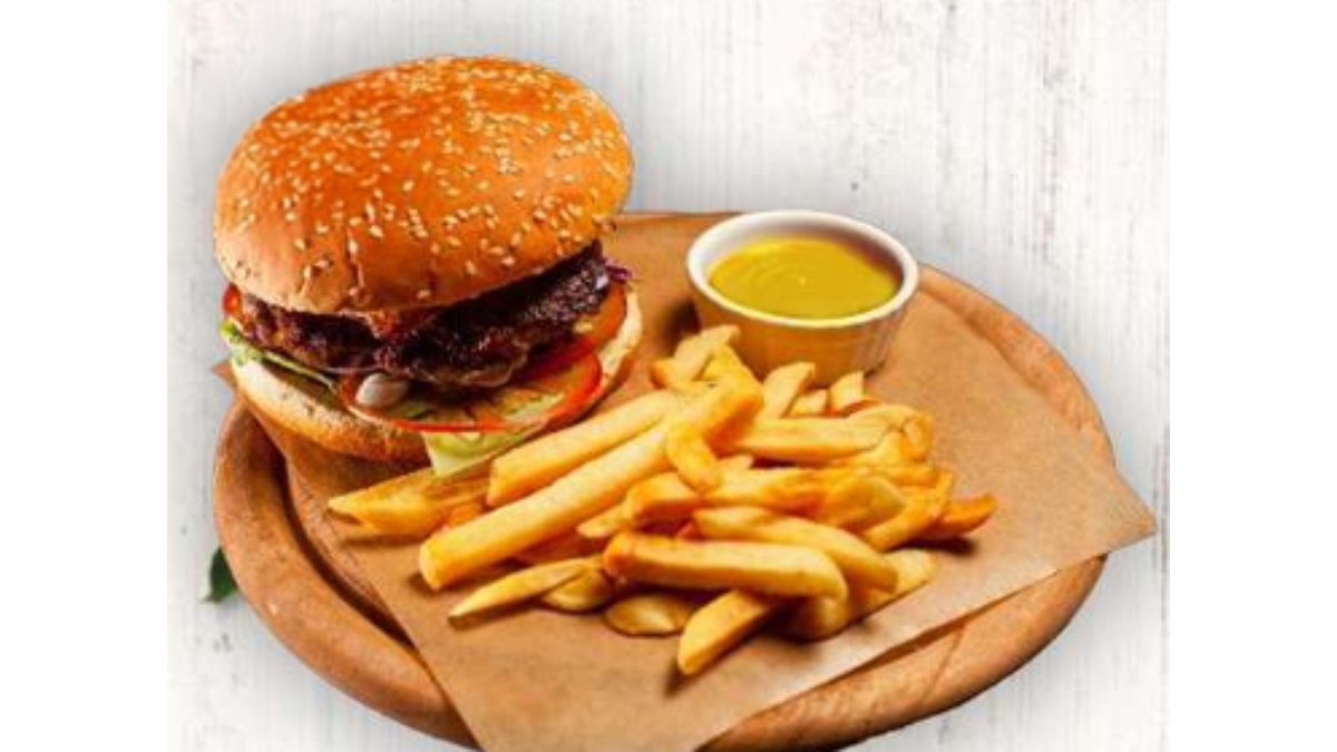 Бургер на выбор, фри, сырный соус