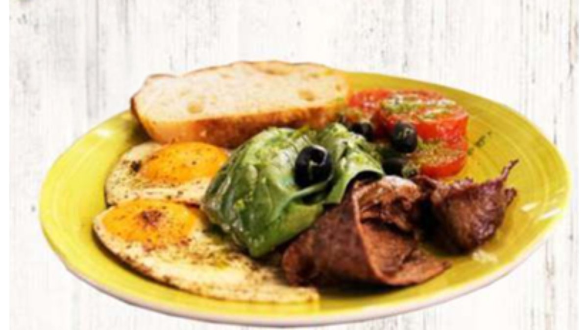 Глазунья, бекон, помидор, чиабатта