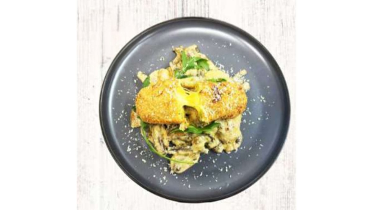 Моцарелла, шампиньоны, вешенки, сырный соус
