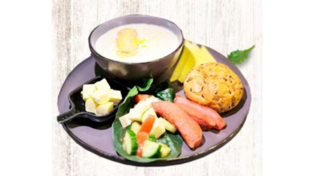 Каша на выбор, сырники, яйцо отварное, йогурт, тост, помидоры, колбаска копченая