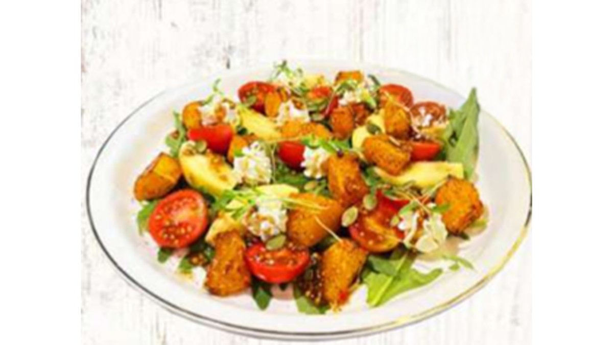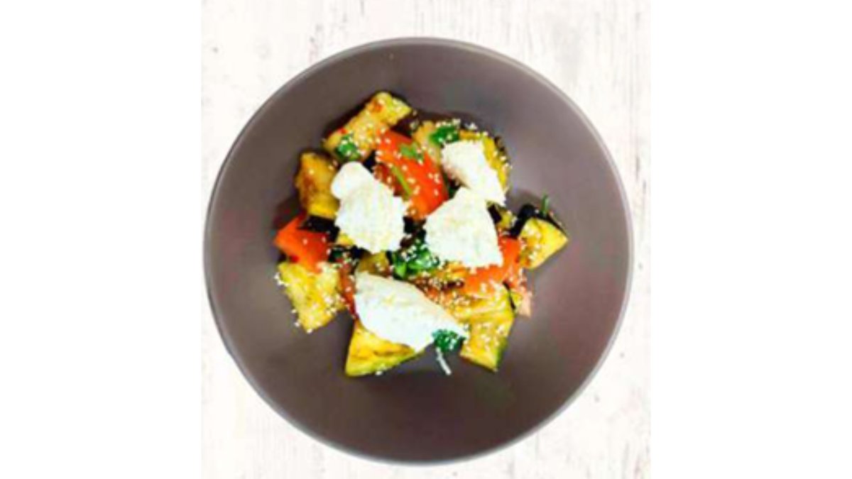 Салат с хрустящими баклажанами и крем чизом