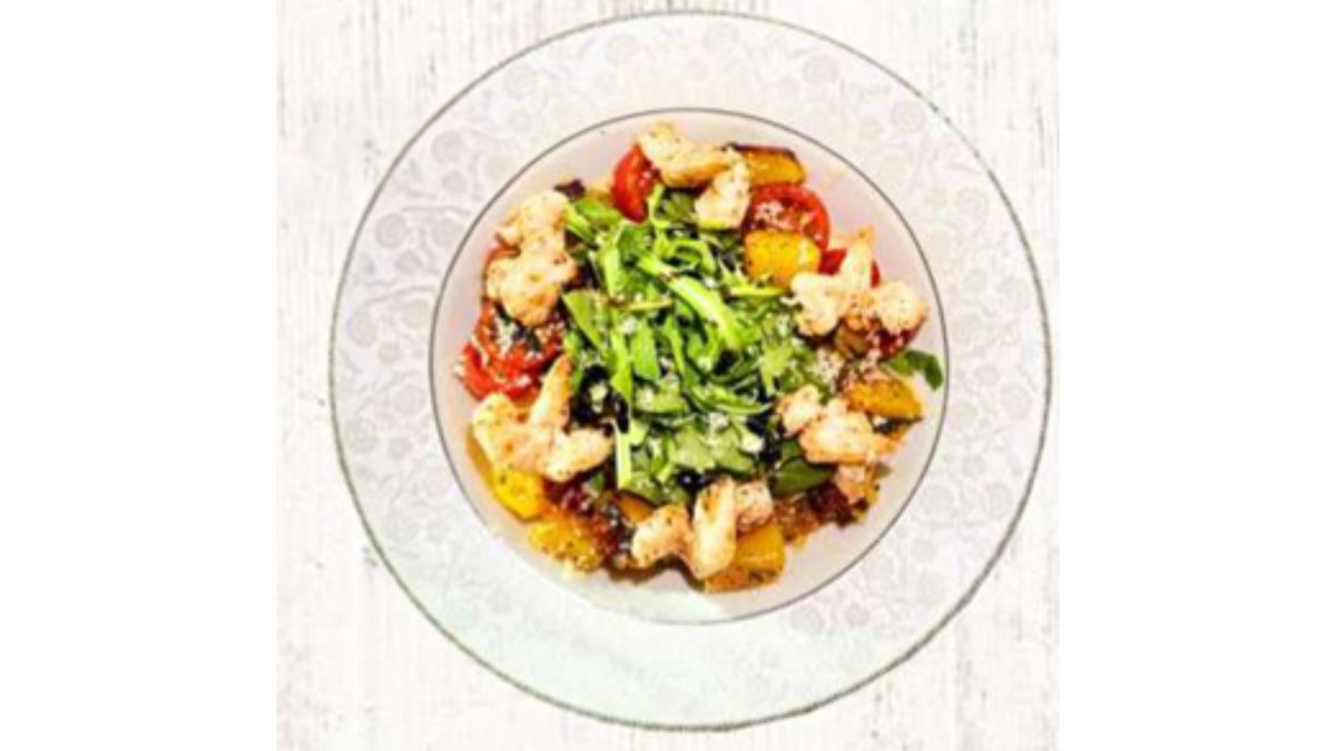 Куриная грудка, томаты, соус цезарь, пармезан, моцарелла