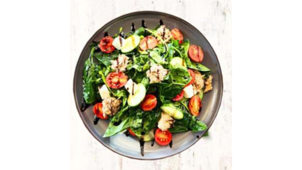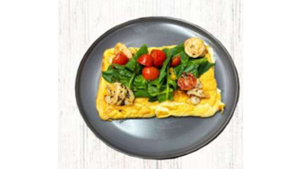 Омлет, шпинат, креветки, черри