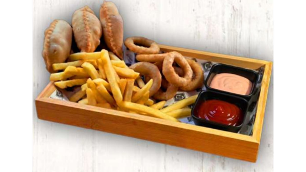 Чебуреки, луковые кольца, фри, соусы