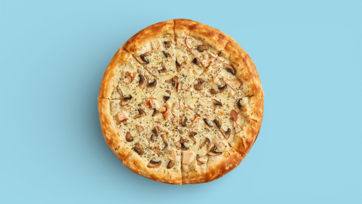 25см Сливочный соус, сыр моцарелла, курица, шампиньоны
