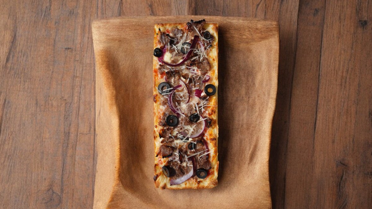 320гр, 25 см, Сыр моцарелла, донар, соус пелати, красный лук, оливковое масло