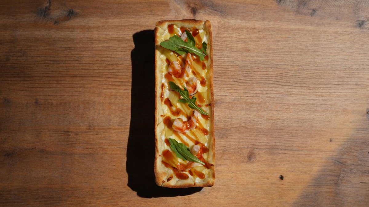 Пицца с креветкаи и ананасом