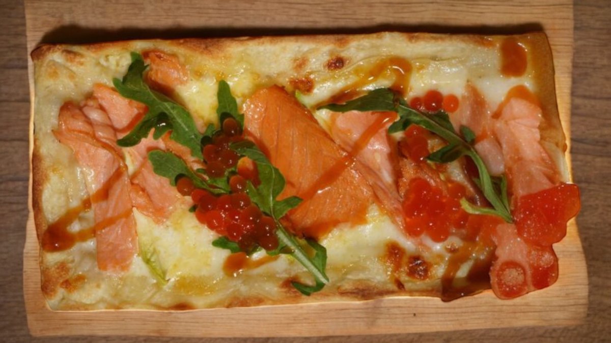 Пицца с лососем и икрой