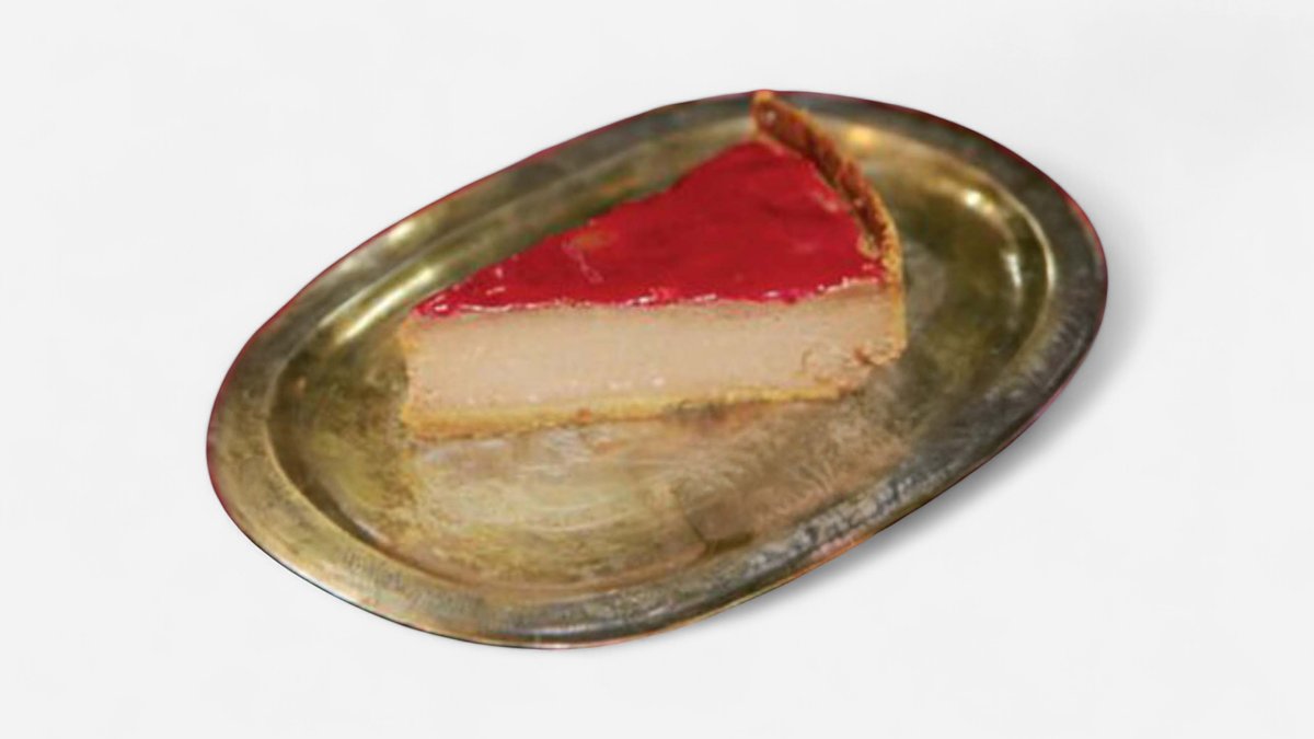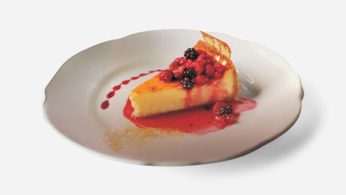 Из особого сорта сливочного сыра, украшен ягодным соусом