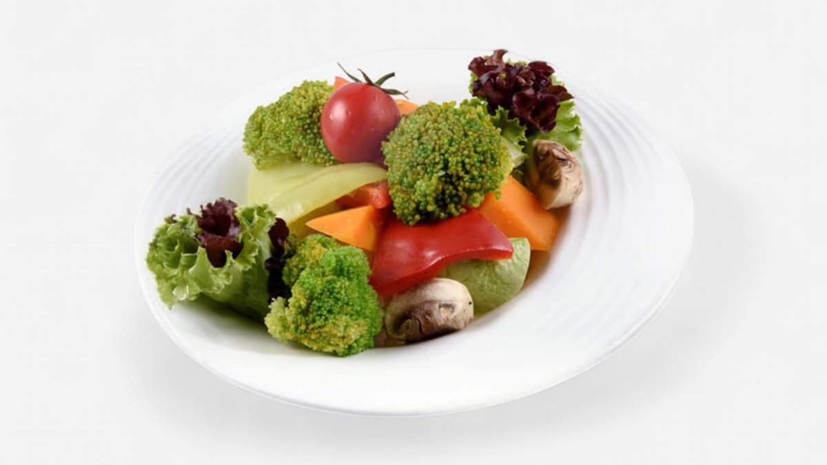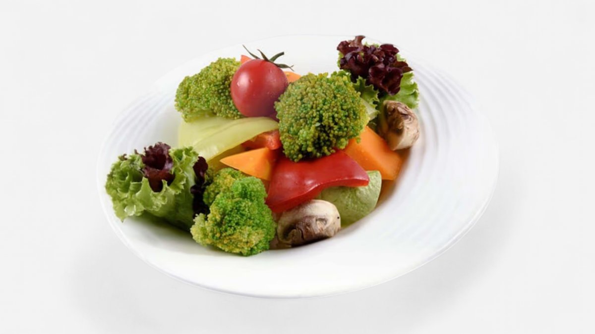 Ассорти из помидоров, огурцов, моркови, болгарского и стручкового перца, зеленого лука, зелени, сюзьмы и брынзы