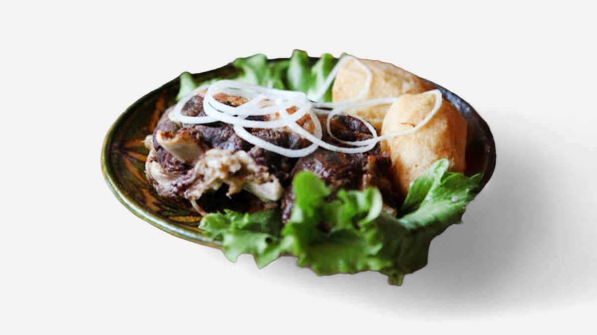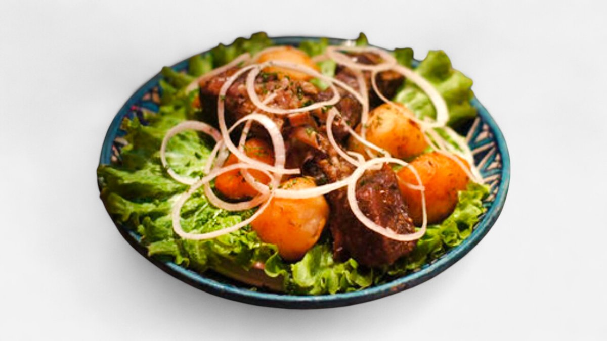 Деликатесное говяжье мясо, приготовленное с сезонными тушёными овощами по специаль-ному рецепту многовекового достояния из хвоста быка.