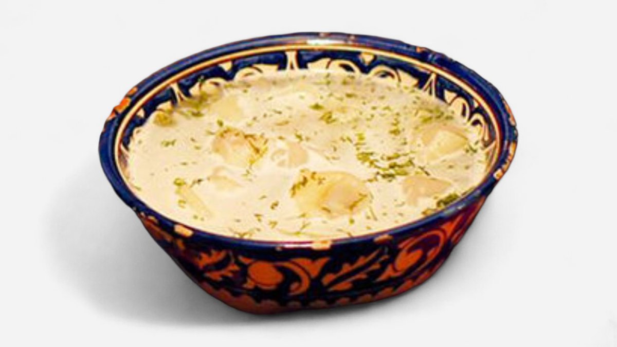 Узбекские пельмени с начинкой из баранины, подаются с прозрачным бульоном
