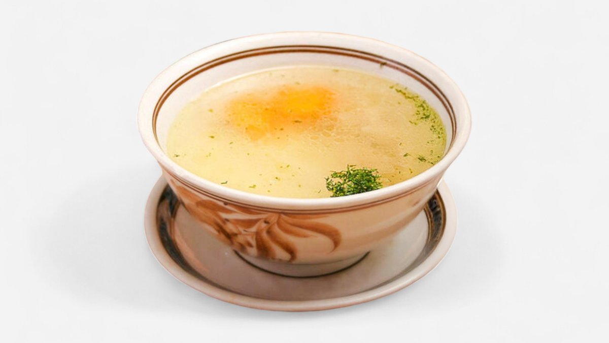 Нежное мясо цыплёнка и лапша нарезанная вручную в ароматном бульоне со специями