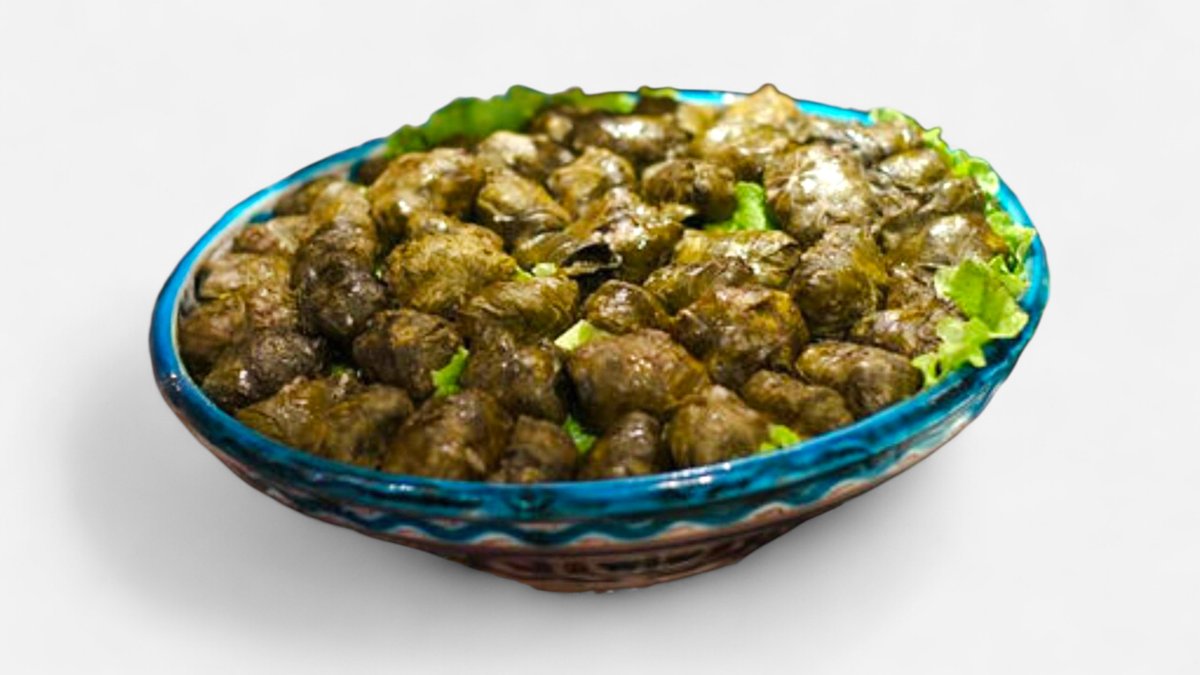 Фарш из баранины и риса в виноградных листьях, готовится на пару, 8-9 штучек (вне сезонье-используются листья законсервированные)