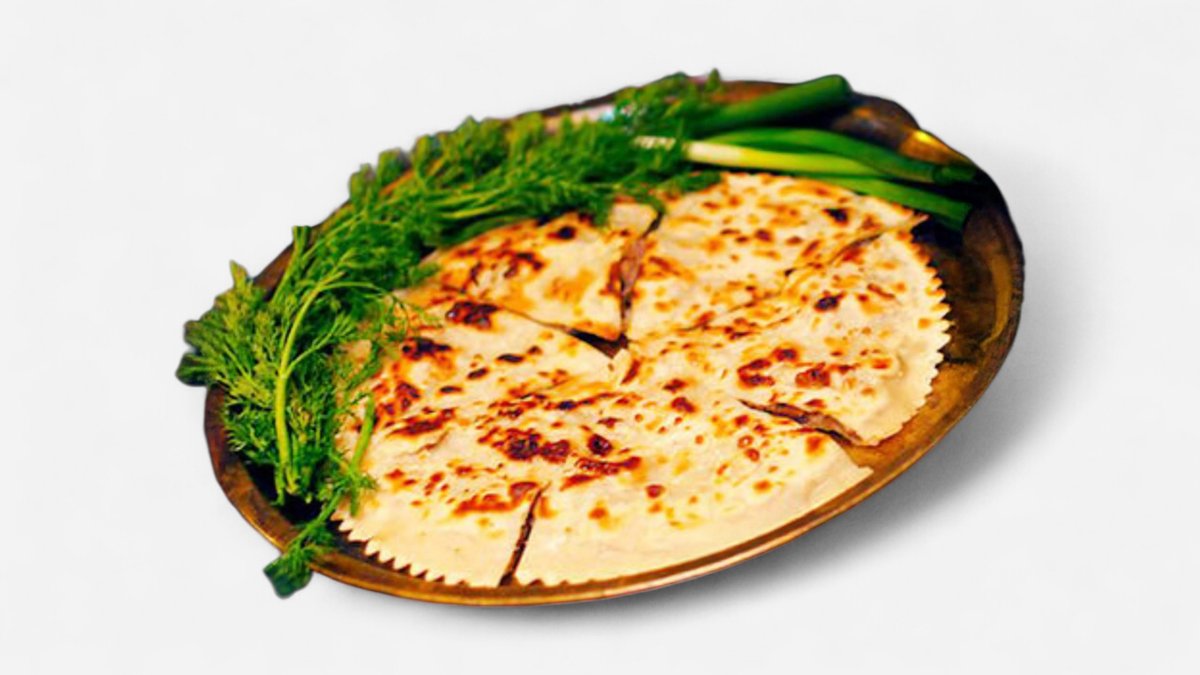 Отварная конина с луком, подаётся на специально приготовленном нежном тесте