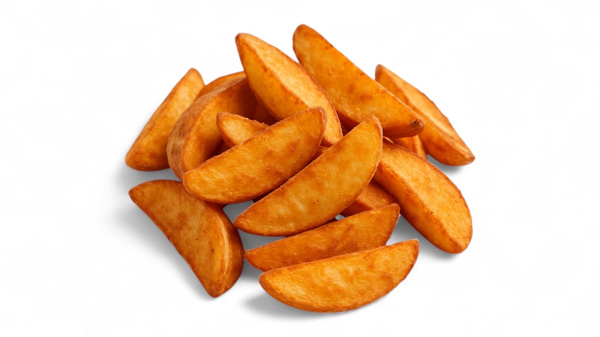 ароматные дольки картофеля с золотистой корочкой, обжаренные до хруста и приправленные специями.