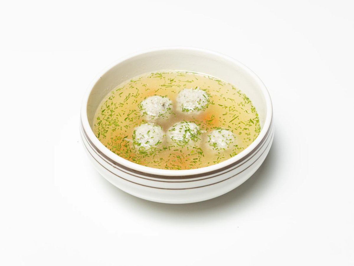 куриный бульон, куриные фрикадельки, картошка, морковь