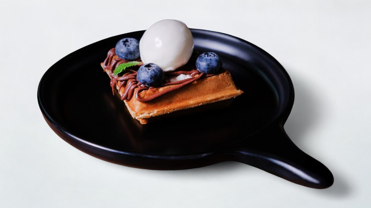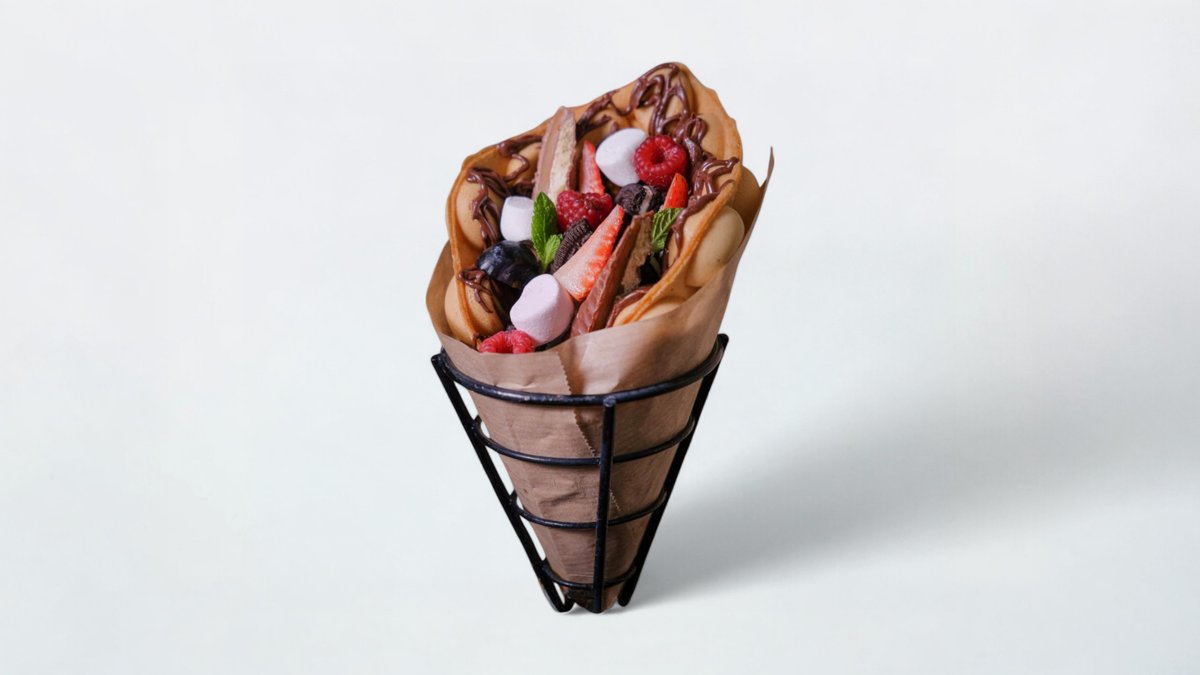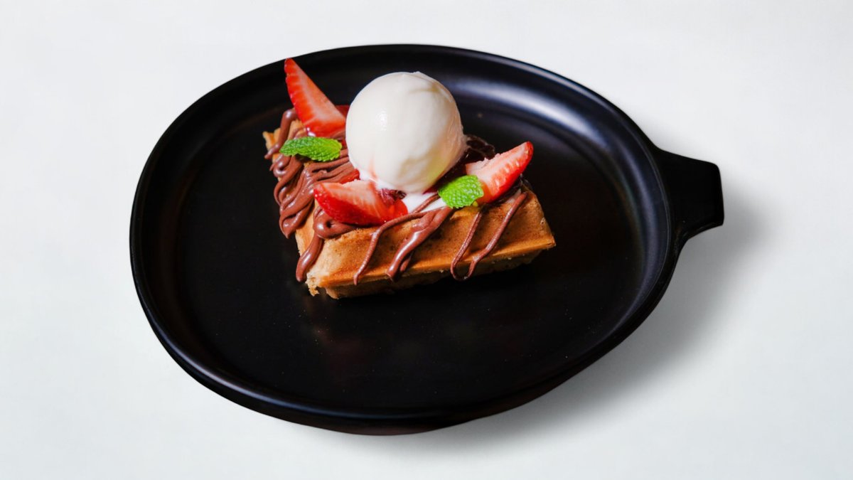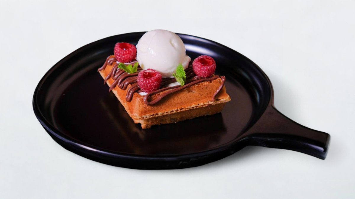 Гонконгская вафля, шоколадная паста малина, клубника, голубика мороженое