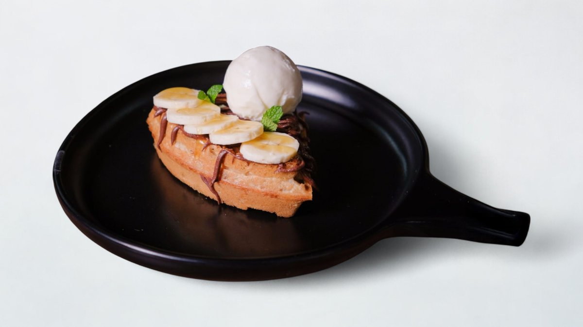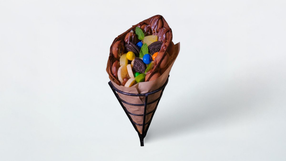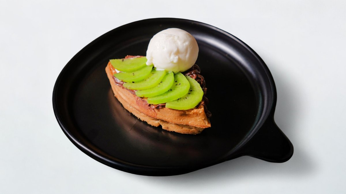 Гонконгская вафля, шоколадная паста банан, киви, ананас, мороженое