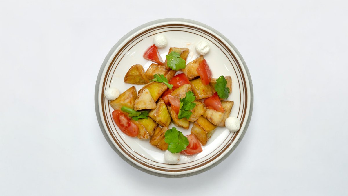 Баклажаны, помидоры, лук зеленый, соус устричный, соус aroy d
