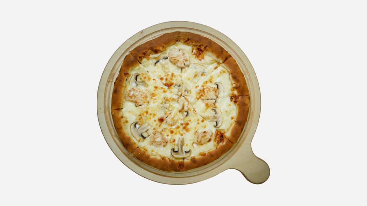 тесто, соус, сыр, грыби, куринное филе, сливки , размер 30 см