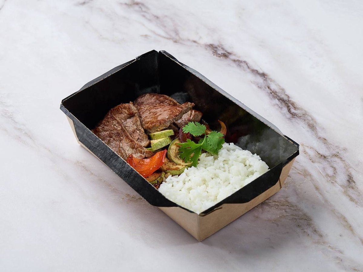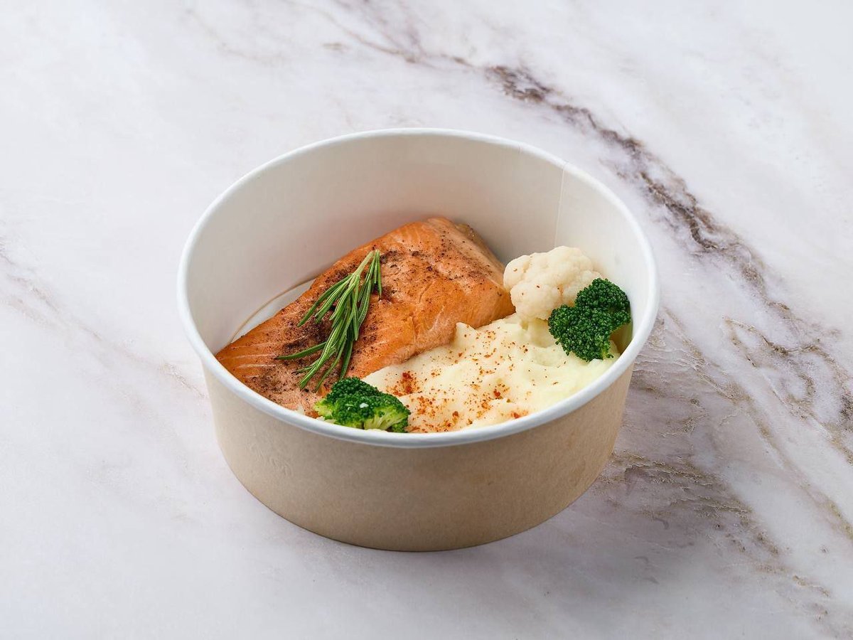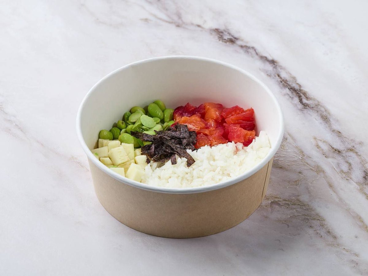 250гр - Рис отварной, нори, лосось слабосолёный, Эдамаме, кабачки