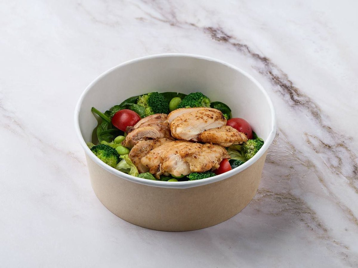 250гр - Куриное бедро, Эдомаме, Огурцы, Айсберг, Черри, Шпинат , Брокколи, Цитронет соус
