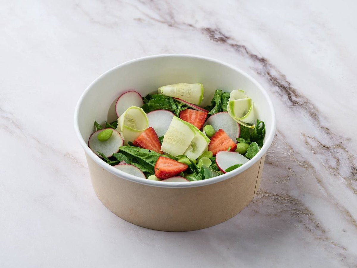 220гр - рукола, шпинат, бобы эдомами, кабачки, редиска, клубника