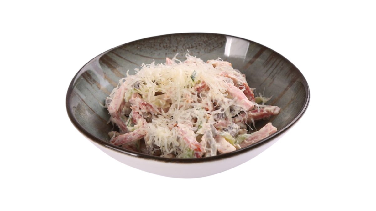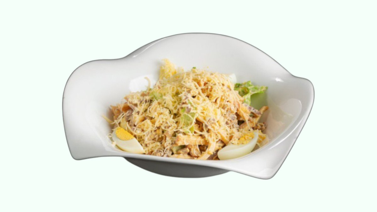 Sharqona nafislik. Yupqa to‘g‘ralgan bodring, go‘sht va tuxumli quymoqchalar uyg‘unligi. Maxsus sous bilan boyitilgan bu salat o‘zining nozikligi bilan ajralib turadi.
