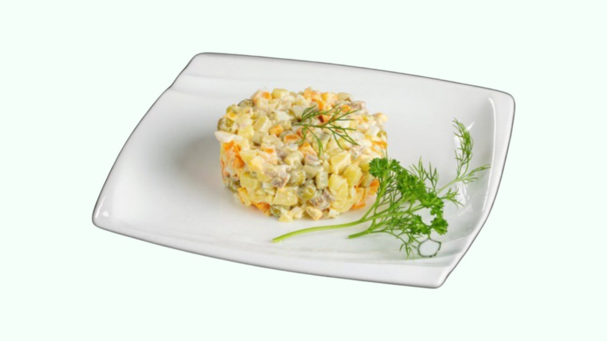 Dasturxon ko‘rki. Qaynatilgan sabzavotlar, yumshoq go‘sht, tuzlangan bodring va nozik mayonez sousining klassik uyg‘unligi. Har doim sevimli, bolalikni eslatuvchi tanish lazzat.