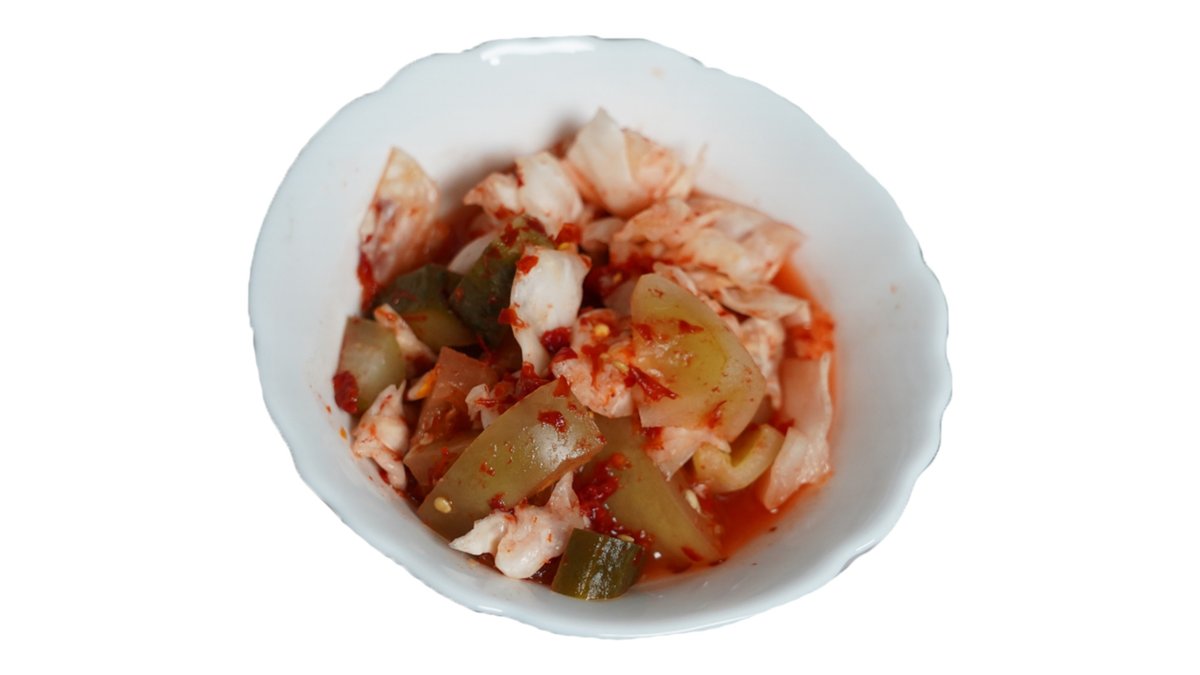 Palovning ajralmas do‘sti. Yupqa to‘g‘ralgan pomidor va piyoz, achchiq qalampir bilan "qizdirilgan". Go‘shtli taomlarning yog‘ini kesib, ta’mini 100% ochib beradi.