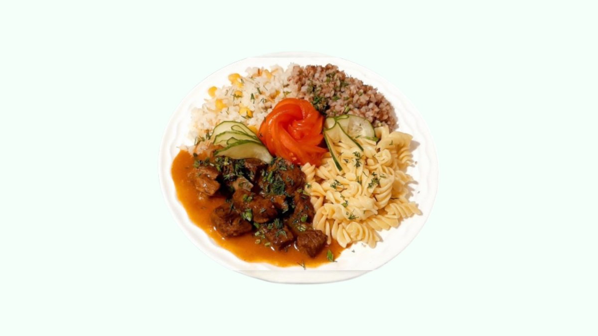 Quyuq va boy podlivda pishirilgan yumshoq go‘sht bo‘laklari. Pomidor va sabzavotlar sharbati singib ketgan, non botirib yeyish uchun yaratilgan to‘yimli tushlik.