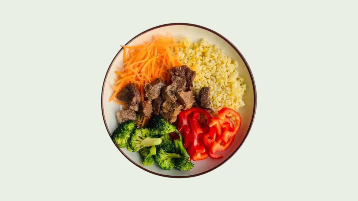 оул с тушёной говядиной Это сытное и питательное блюдо сочетает богатство вкусов и текстур. Тушёная говядина придаёт сочность и насыщенность, булгур — питательную основу с ореховой ноткой. Красный перец и морковь добавляют сладость и хруст, запечённый брокколи — витамины и текстуру. Оливковое масло объединяет ингредиенты, подчёркивая вкус. Всё вместе — сбалансированный и аппетитный боул Белки 22г, жиры 14г, углеводы 45г, 511 калорий