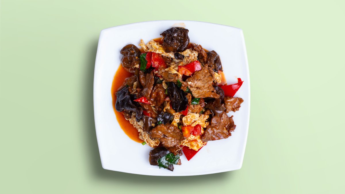 Суп с тофу, говядиной и древесными грибами.