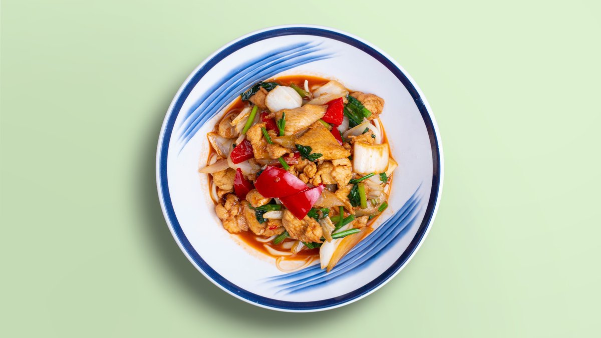 Жаренный лагман с куриным мясом