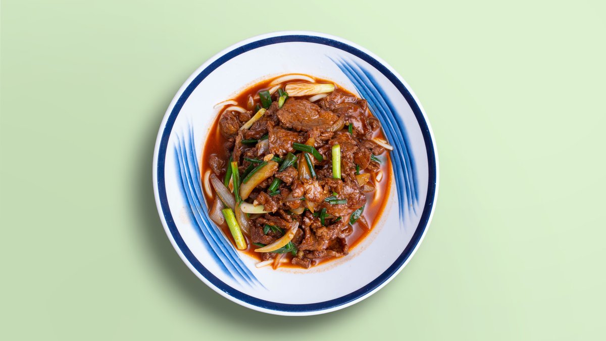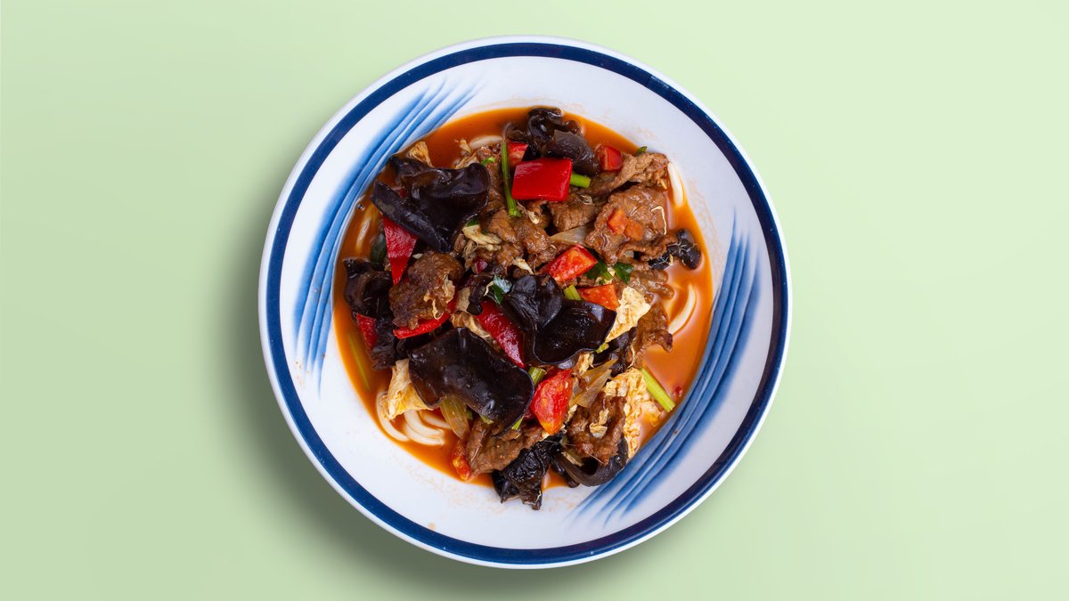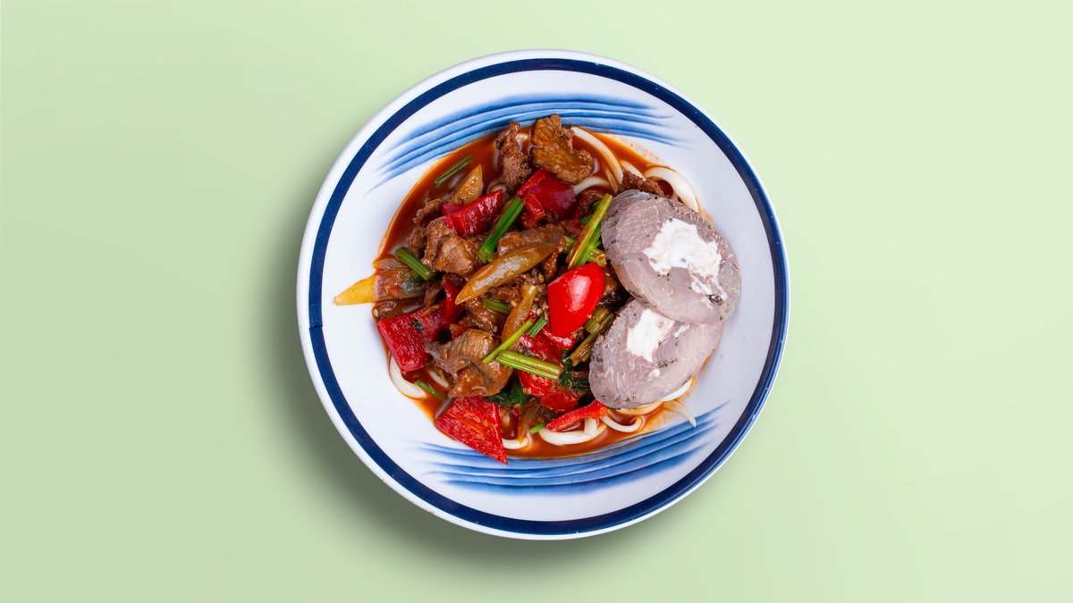 Классический уйгурский лагман с говядиной и овощами.