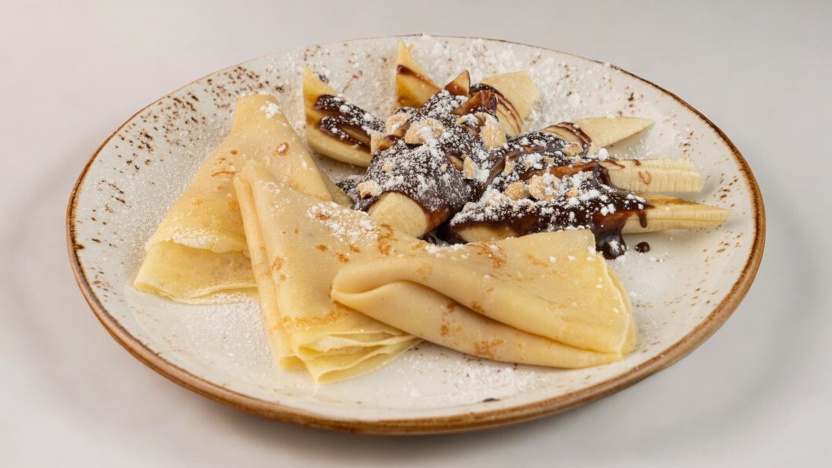 Блины с бананом, нутеллой и фундуком
