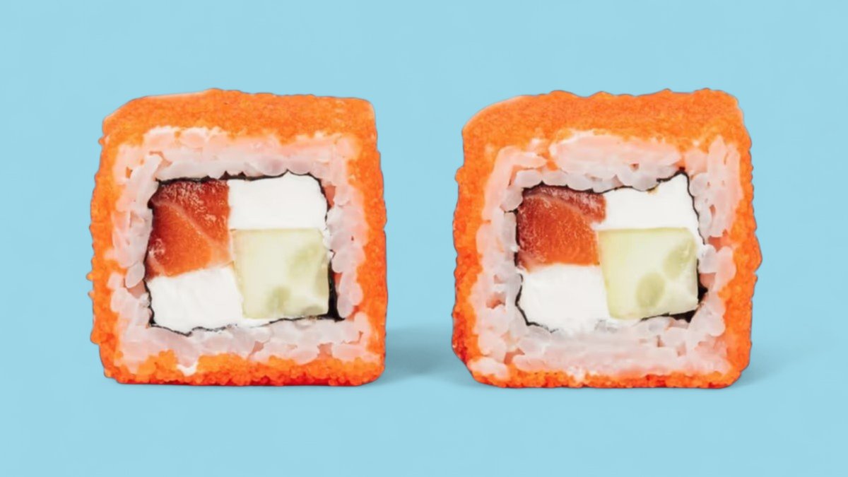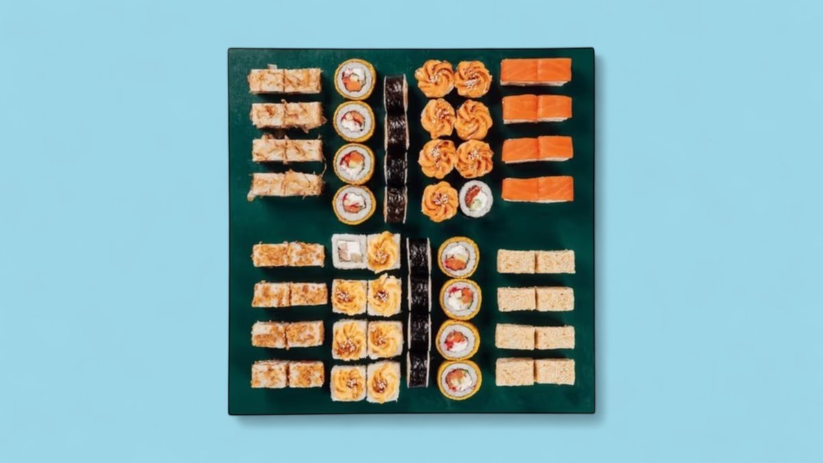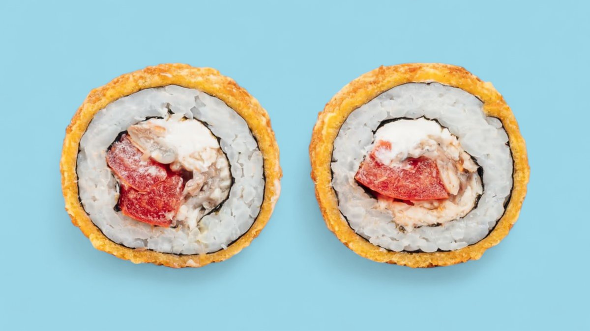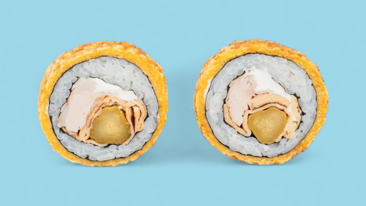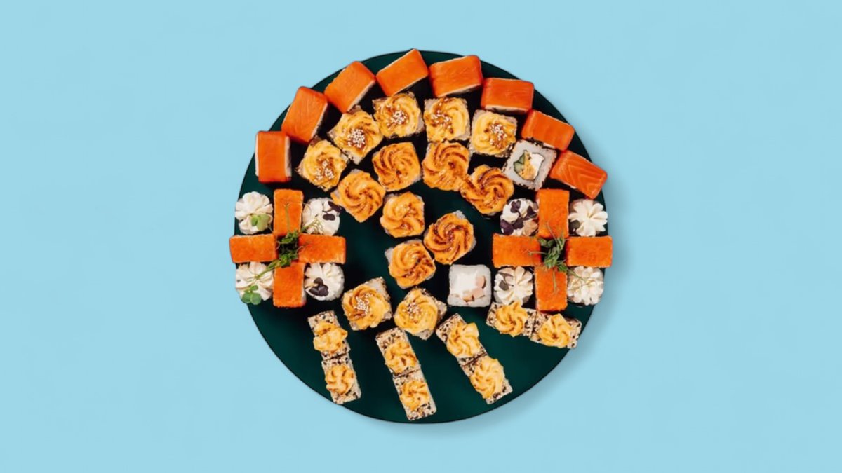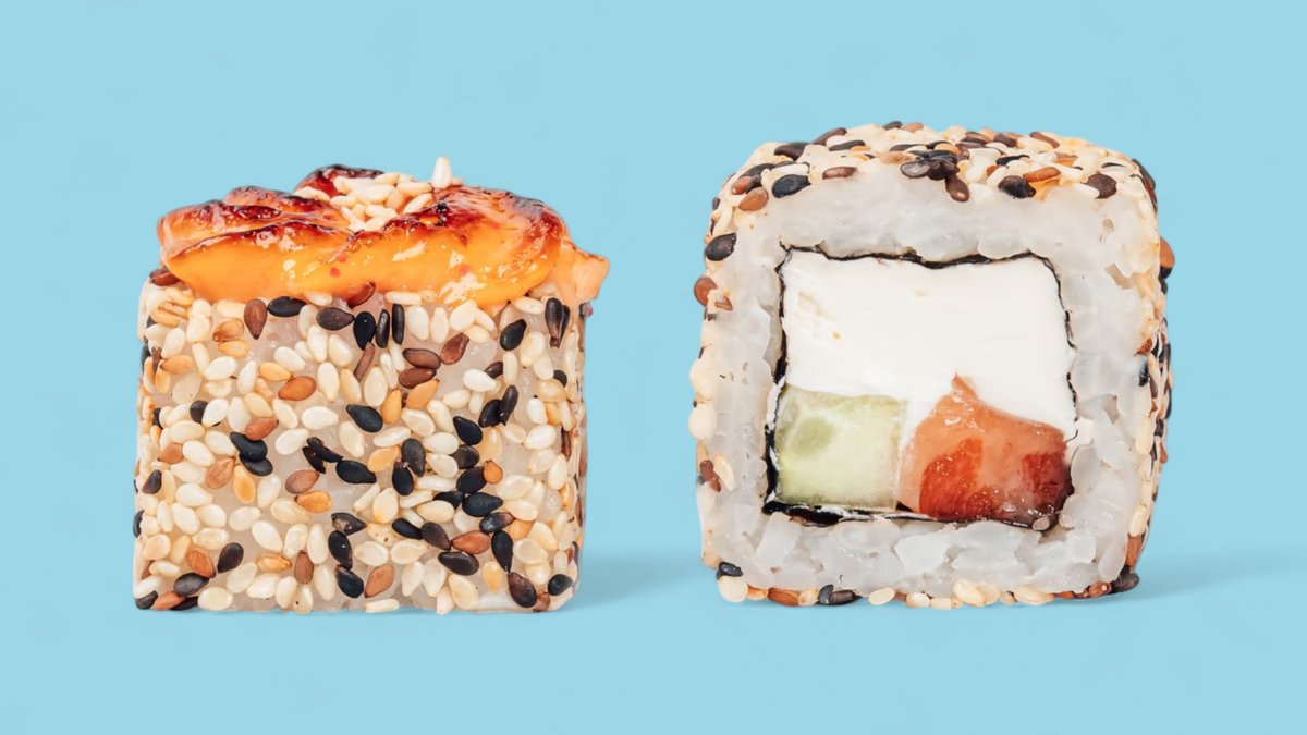 1320г Роллы "Филадельфия", 8 шт. Мини-Роллы сливочные с огурцом, 8 шт. Горячие Роллы с Курицей, 8 шт. Запеченные Роллы "Калифорния", 8 шт.