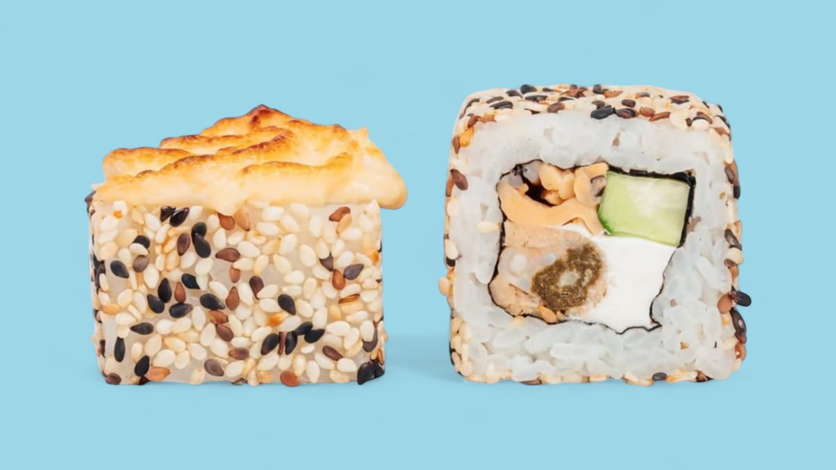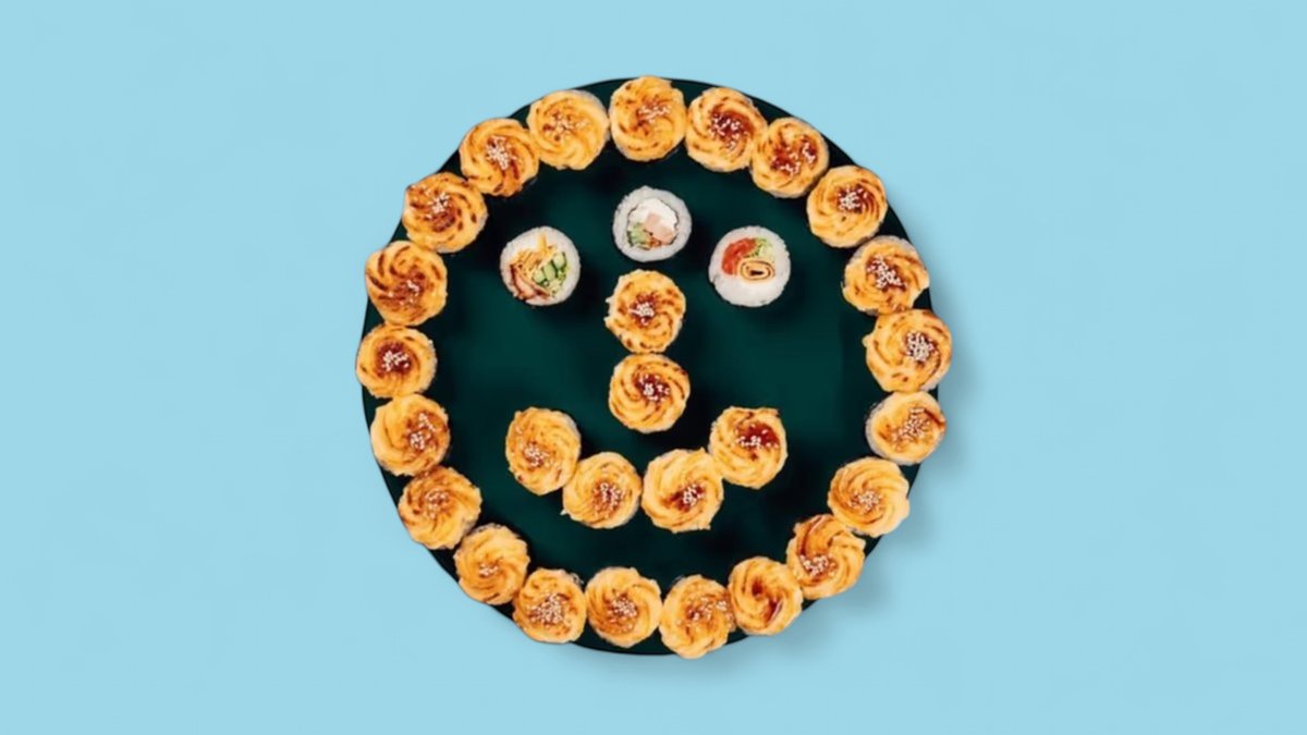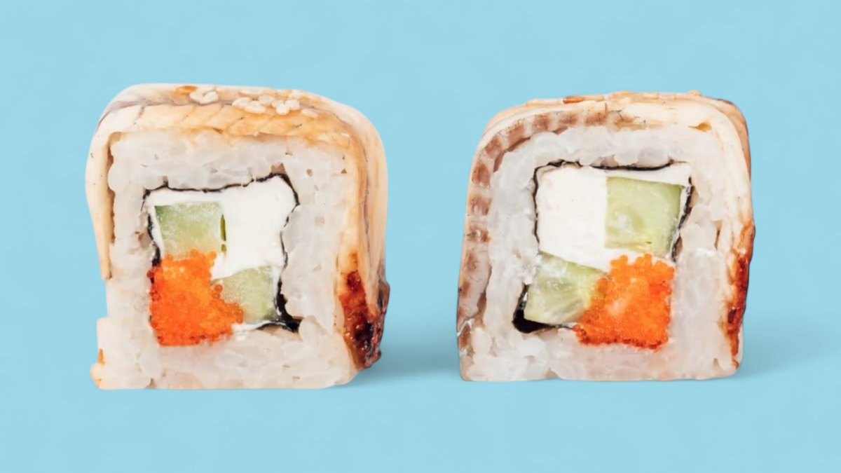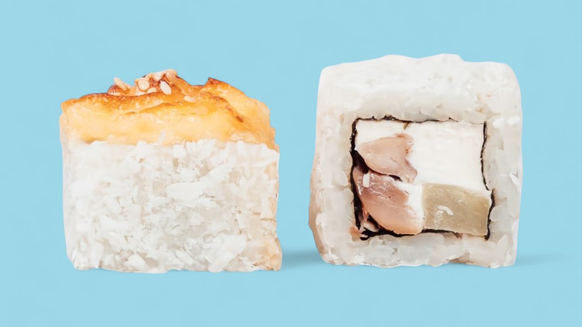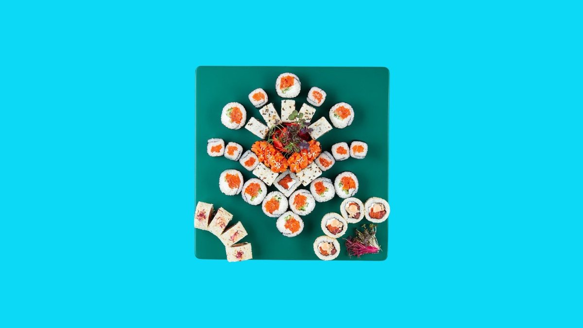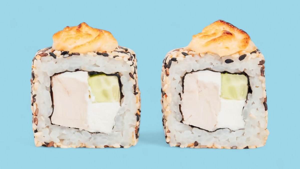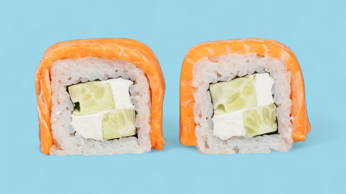 1320г Роллы "Филадельфия", 8 шт. Мини-Роллы сливочные с огурцом, 8 шт. Горячие Роллы с Курицей, 8 шт. Запеченные Роллы "Калифорния", 8 шт.