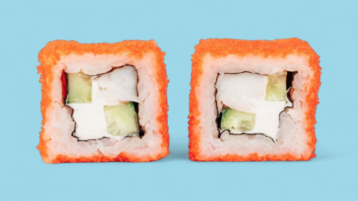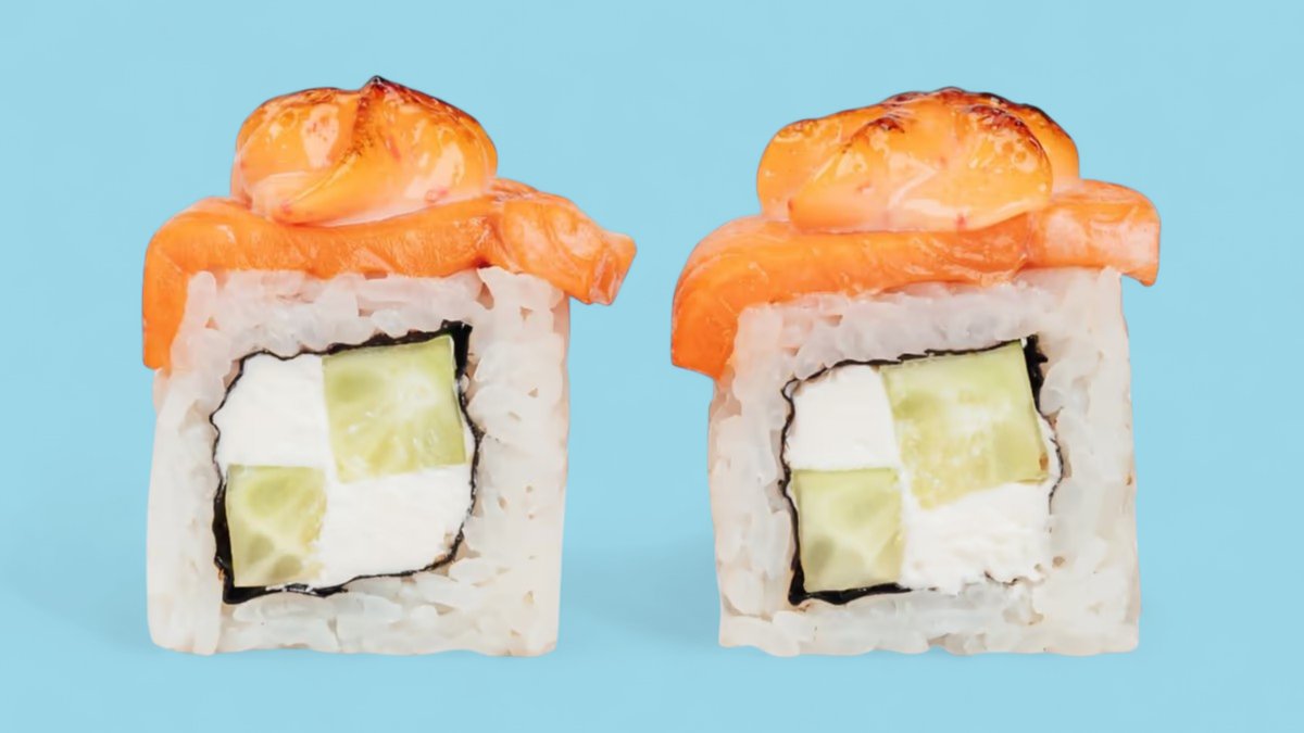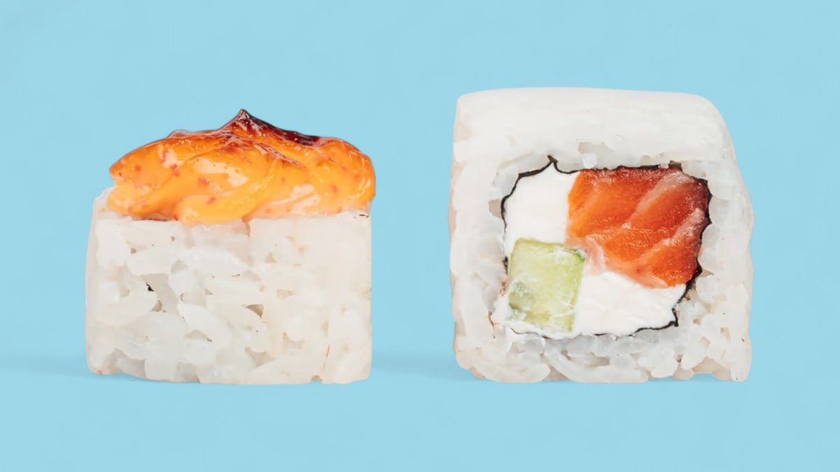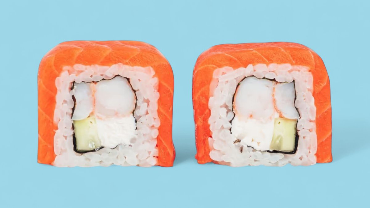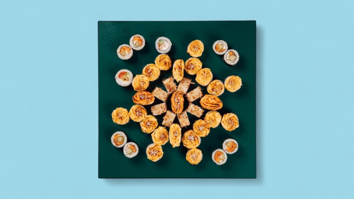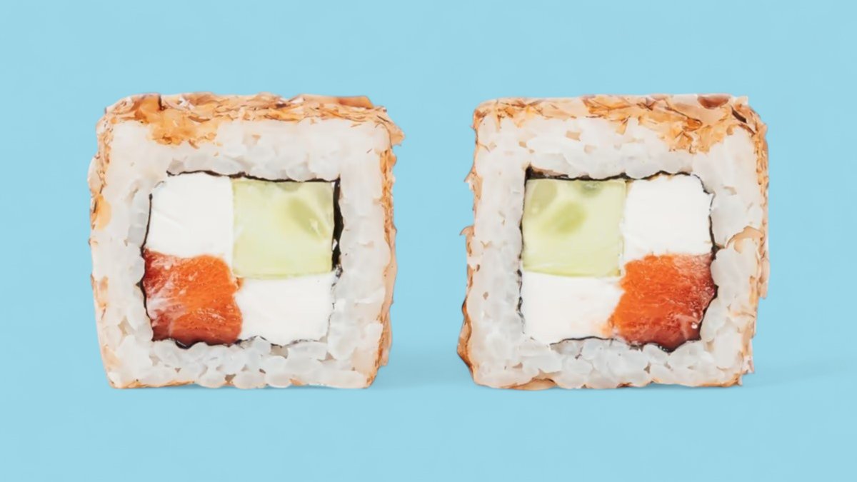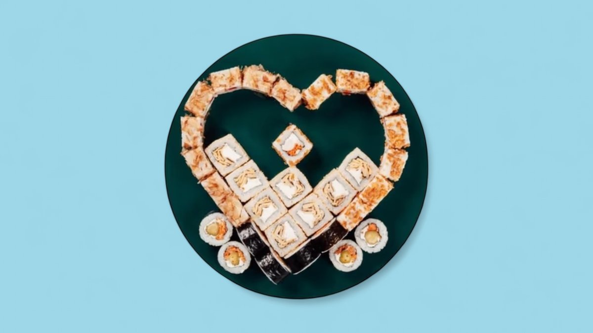 1320г Роллы "Филадельфия", 8 шт. Мини-Роллы сливочные с огурцом, 8 шт. Горячие Роллы с Курицей, 8 шт. Запеченные Роллы "Калифорния", 8 шт.
