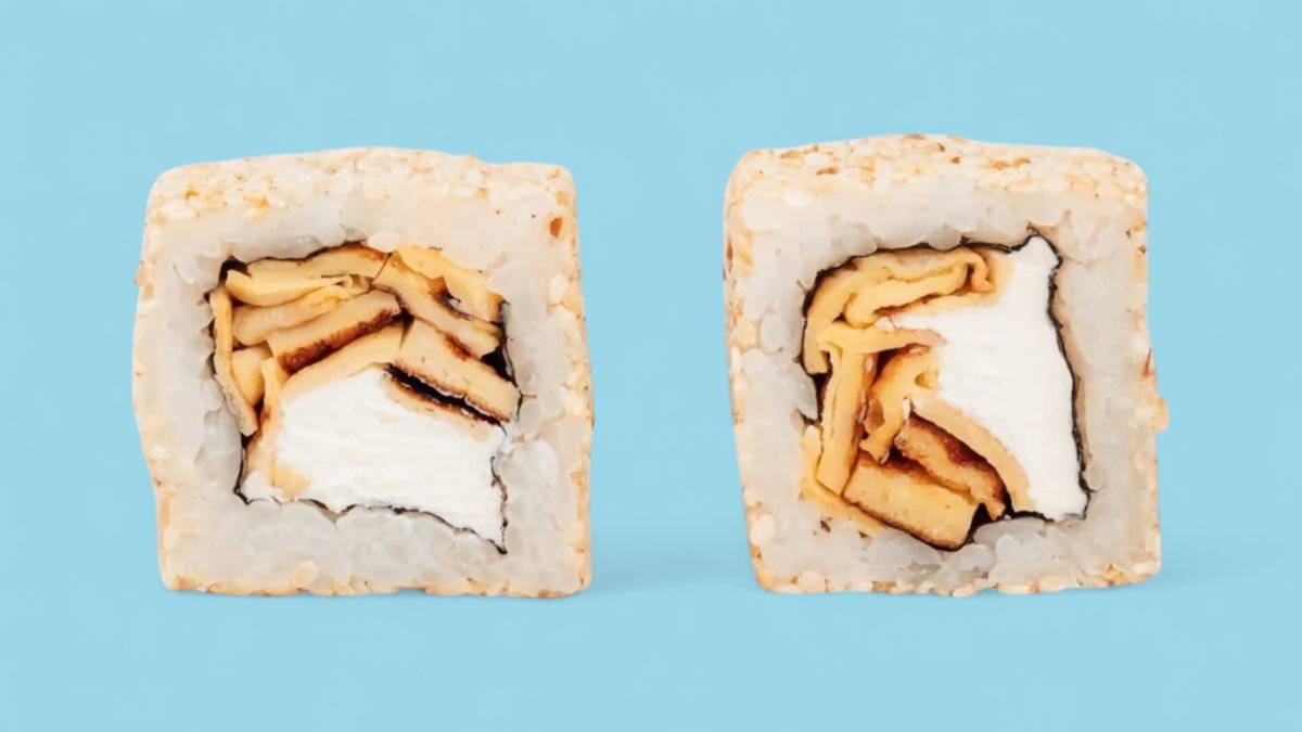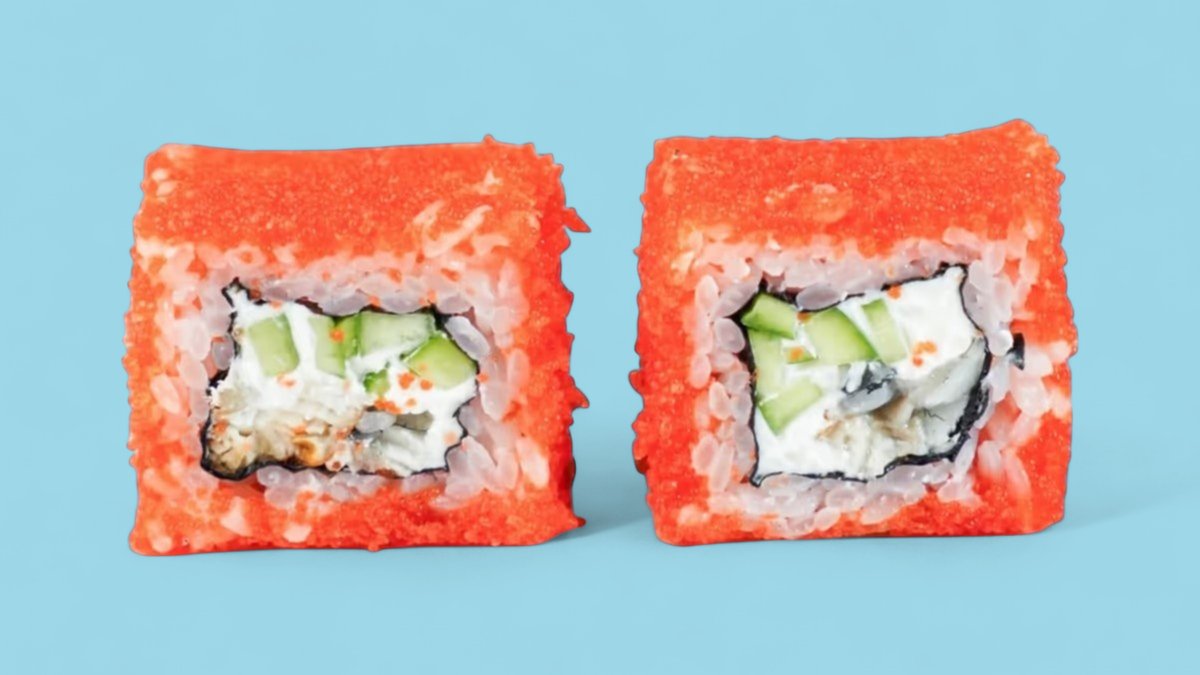 301г Мясо "Угря", творожный сыр, огурец и икра "Масаго".