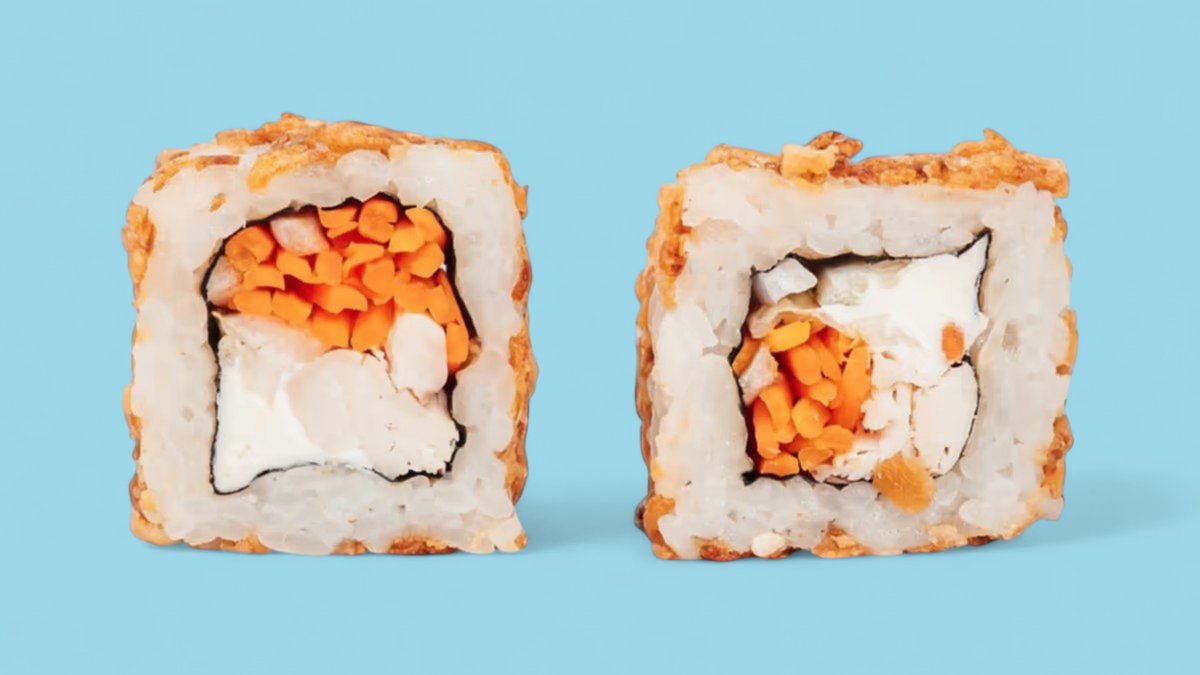 301г Мясо Снежного Краба (имитация), творожный сыр, огурец, кунжут и икра "Масаго".