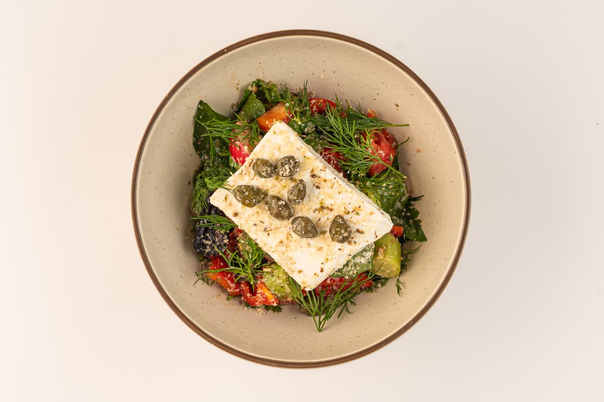 250g Pomidоrlar, bodring, bulg‘or qalampiri, qizil piyoz, fetaksa
