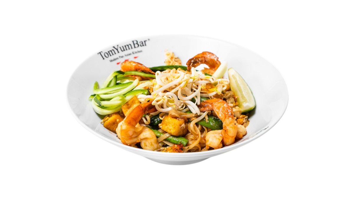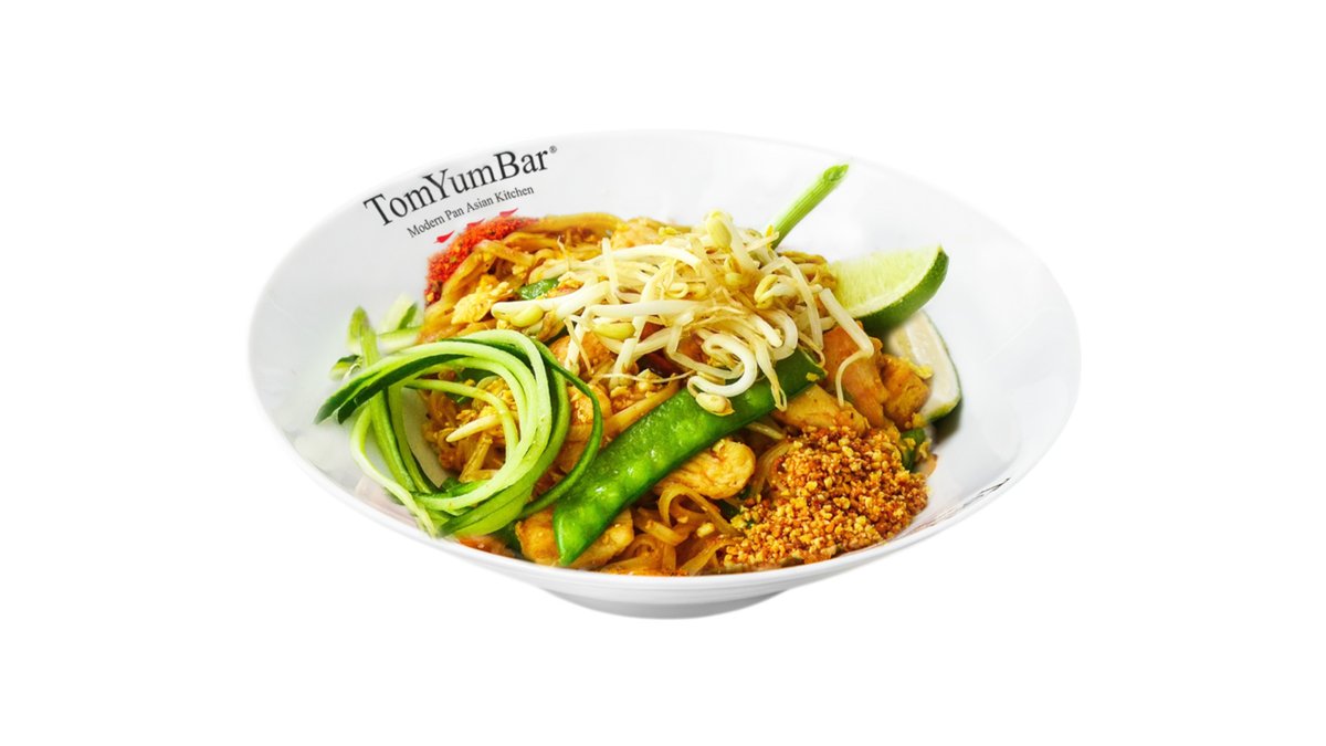 Аутентичный рецепт с рисовой лапшой, креветками, тайским горошком, стручковой фасолью, ростками маш и тофу. В основу добавляется яйцо, блюдо украшается зелёным луком, лаймом, жареным арахисом и специей шичими.