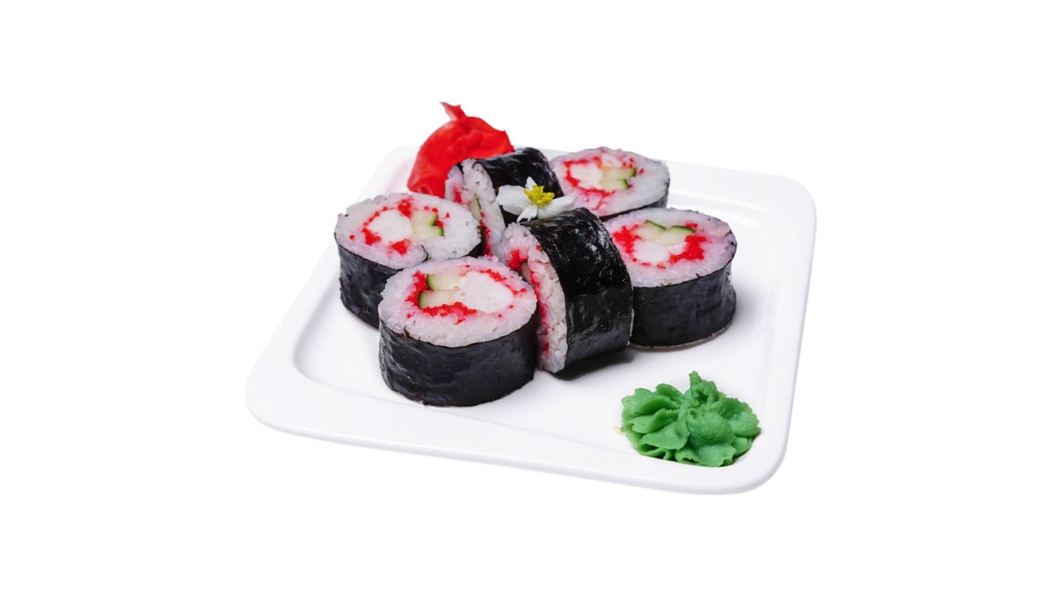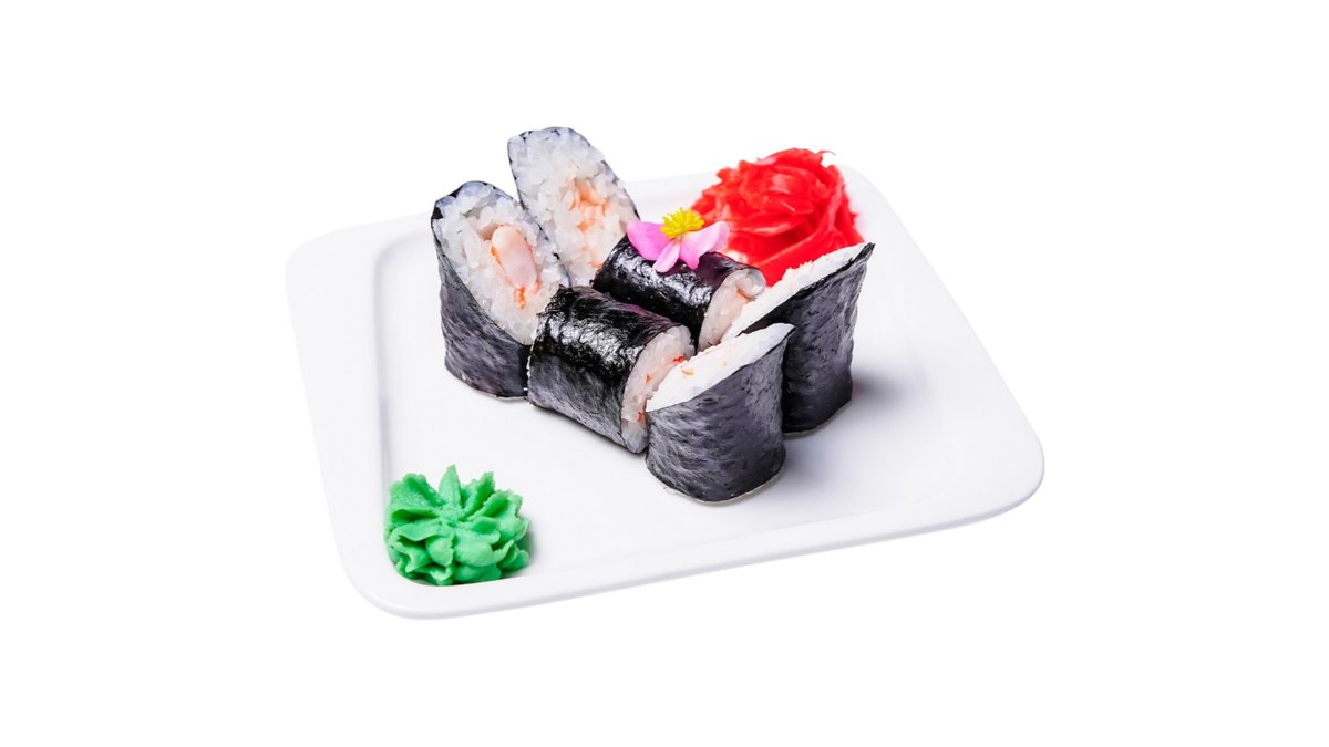 Ролл с королевской креветкой Подаются с имбирем и васаби.